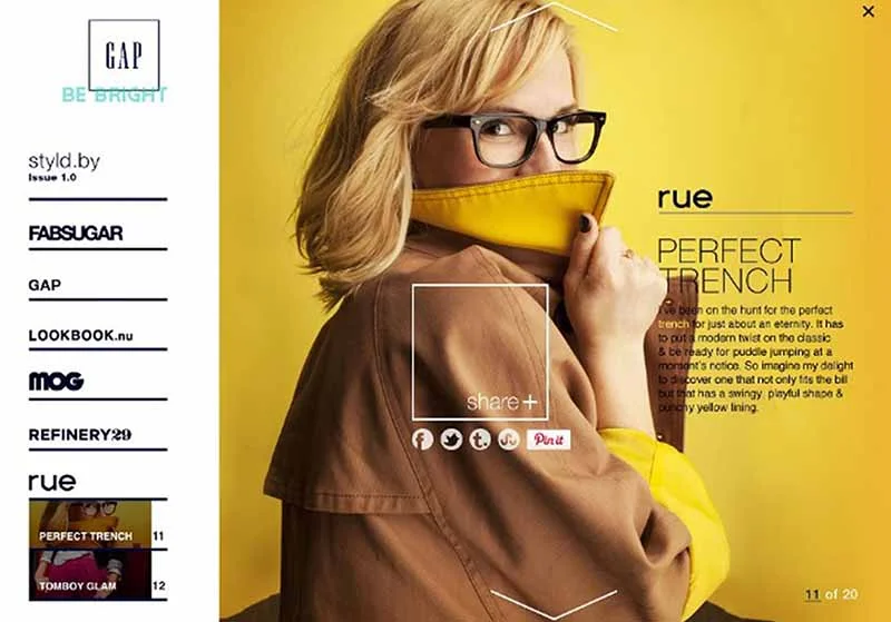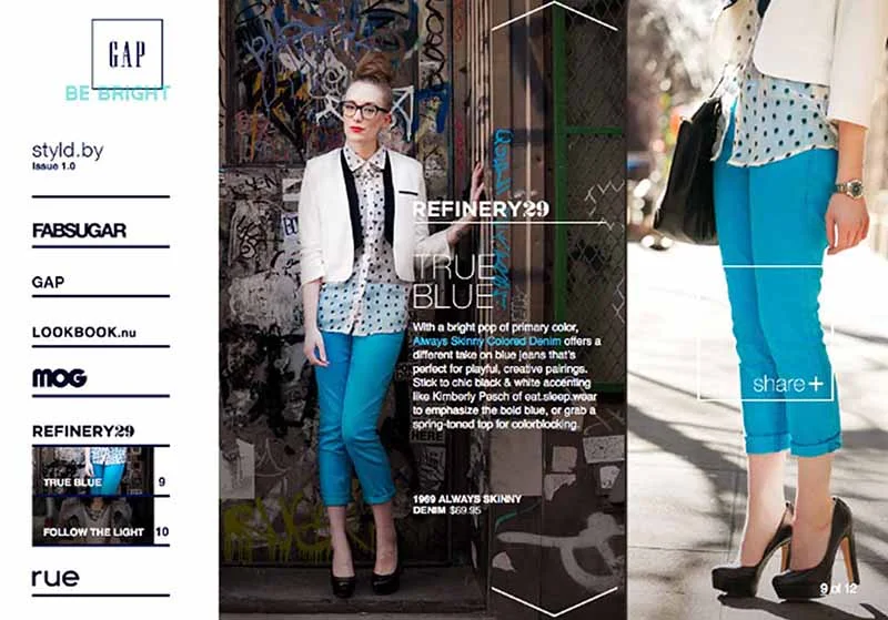 Social by design, Styld.by turned over Gap product to taste makers to style, shoot and editorialize. Viewers could then browse the experience in-situ on any partner site or social media. It meant budget allocated for production would be used on Media. (Making it, perhaps, the first time in advertising history that a creative team chose a bigger media spend over a glamorous production shoot.)